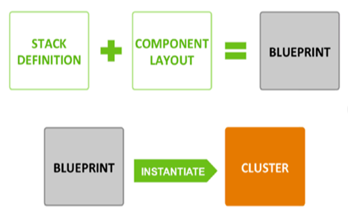 Ambari Blueprints provide an API to perform cluster installations. You can build a reusable “blueprint” that defines which Stack to use, how Service Components should be laid out across a cluster and what configurations to set.