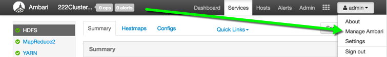 These values can be changed, and new users provisioned, using the Manage Ambari option.