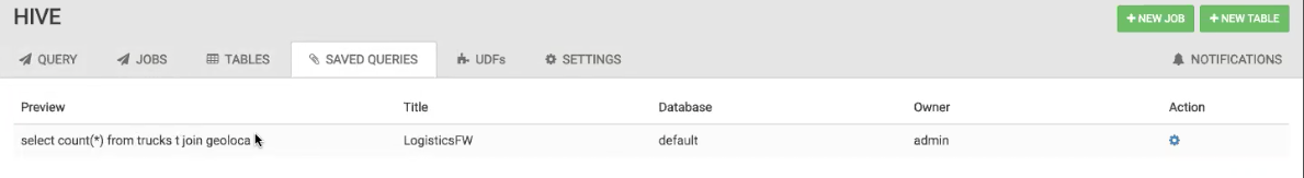 The Saved Queries tab shows all the queries that have been saved by the current user. Click the gear icon to the right of the query list to view the history of a query or to delete it: