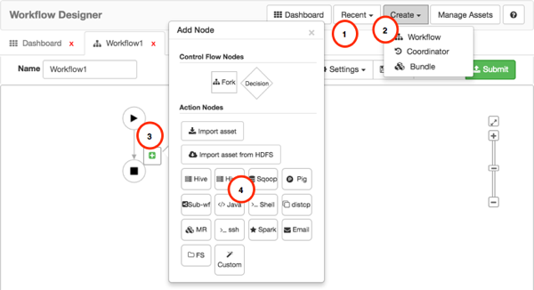 Create a new workflow, coordinator, or bundle from the Create menu.