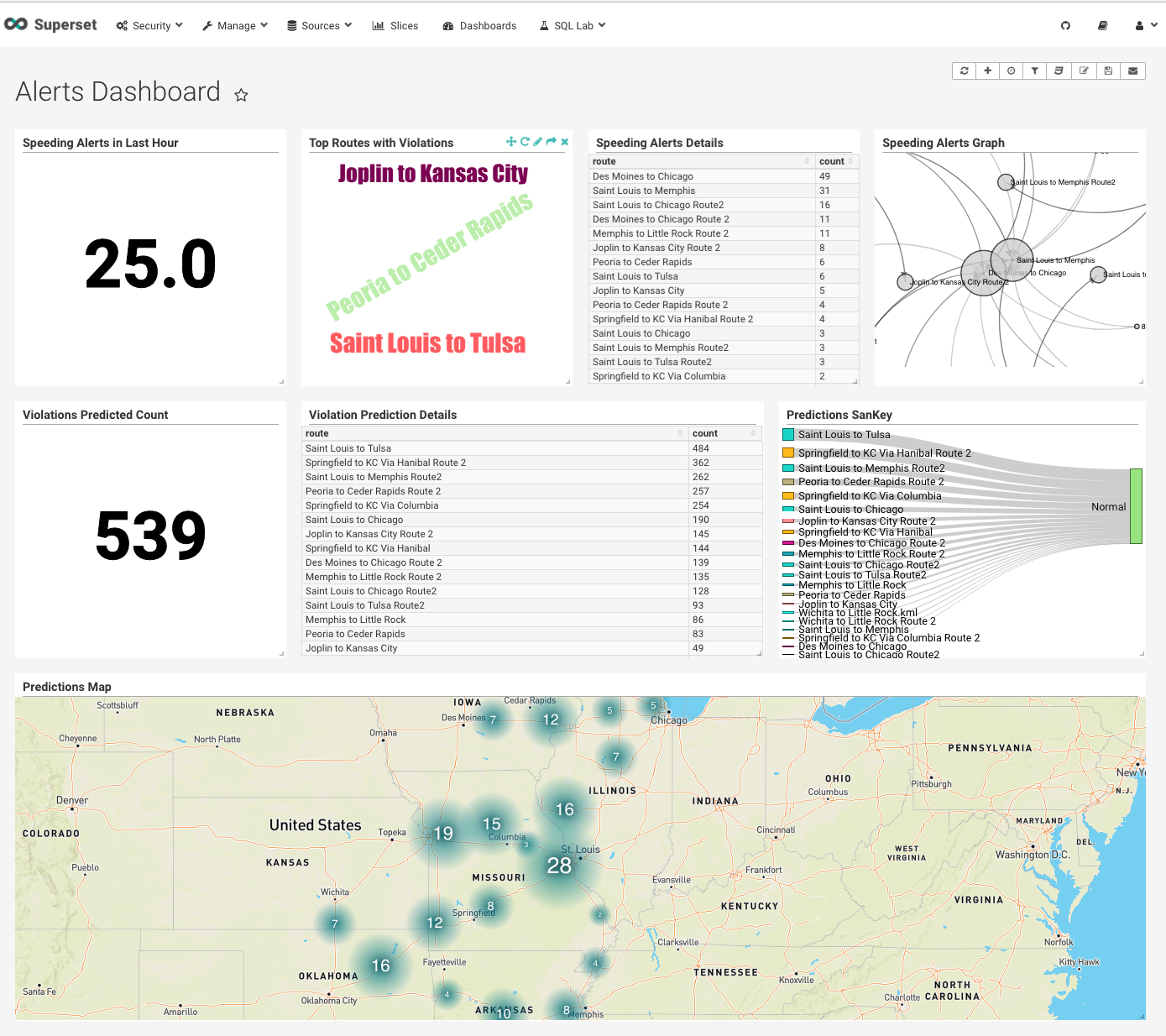 The IOT Trucking application that we implemented using the Stream Builder streams violation events, alerts, and predictions into three cubes: