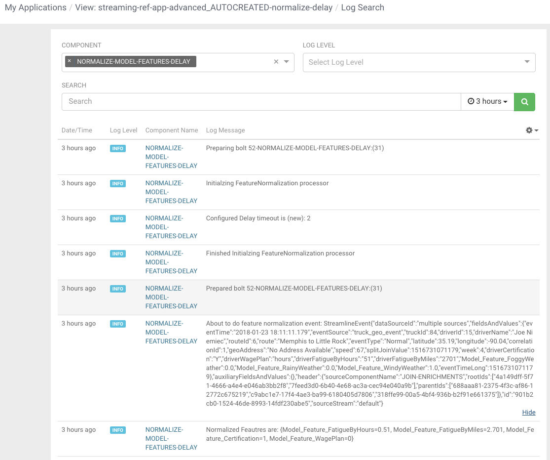 In a distributed system, searching for logs on different hosts for different components can be extremely tedious and time consuming. With SAM, all the application logs are indexed via the Ambari Log Search Server via Solr. SAM makes it easy to drill into and search for logs for specific components directly from the DAG view. Follow the below steps to use distributed log search: