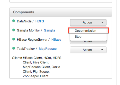 You can also use the Action dropdown on a DataNode host to decommision that node and safely move data from it to other DataNodes in your cluster.