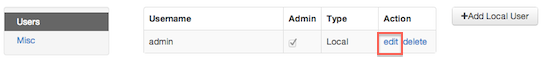 To make a change in a current user's password, click edit, in red above. To add an additional user, click +Add Local User. In both cases, a variant of the username pop up appears.