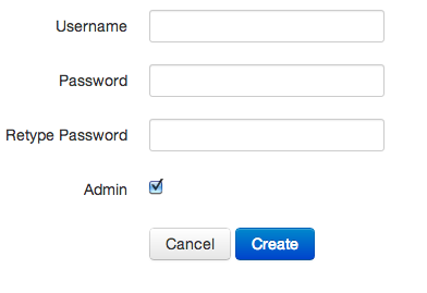 For a new Ambari Web user, enter the desired Username and Password. Check Admin to make this user an administrator. Click Create to make the user.