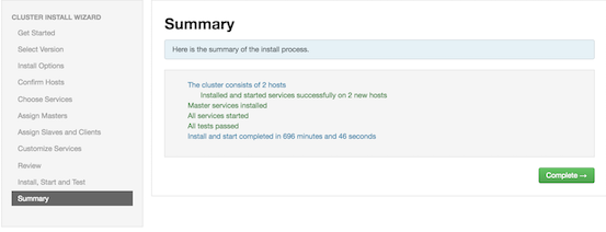 When the wizard presents a summary of results, click "Complete" to finish installing Storm: