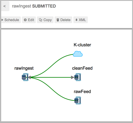 You can schedule, resume, pause, edit, copy, delete, or download the entity definition XML for a feed, process, or mirror.