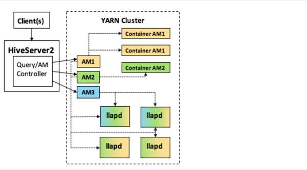 After setup, LLAP is transparent to Apache Hive users and Business Intelligence tools. LLAP runs on YARN as a Slider Application. It can be monitored through the Resource Manager UI or by using Apache Slider and YARN command line tools. Running through Slider enables you to easily open your cluster, share resources with other applications, remove your cluster, and flexibly utilize your resources. For example, you could run a large LLAP cluster during the day for BI tools, and then reduce usage during nonbusiness hours to use the cluster resources for ETL processing.