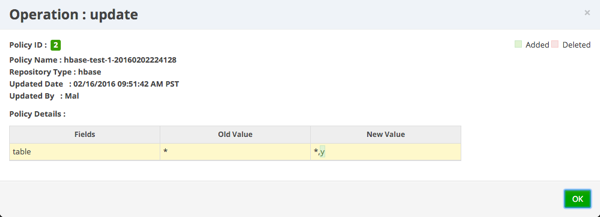 To view details on a particular operation, click the Policy ID, Operation name, or Session ID.