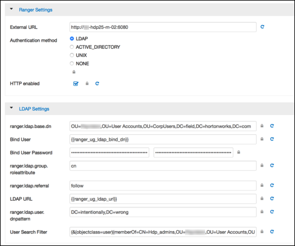 formats like ranger_ug_ldap_bind_dn. These properties are