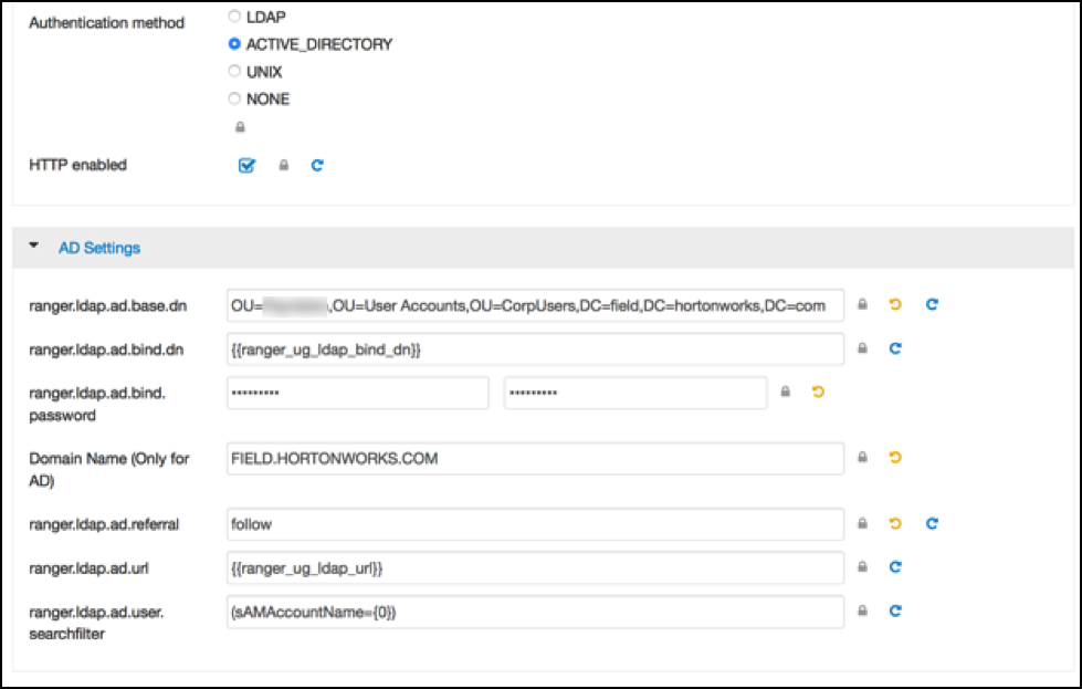 Reference information on Ranger UI authentication, when configuring Ranger AD integration.