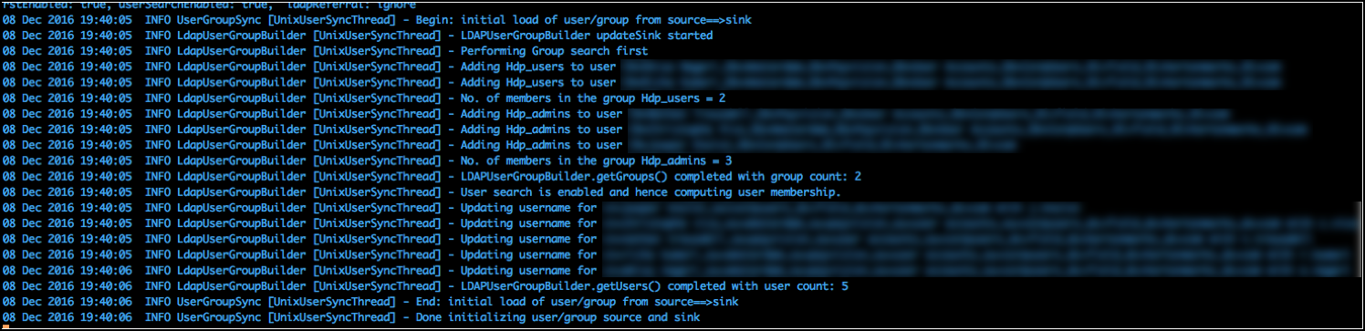 In the example configuration given the scope of the usersync would be all members of both the groups ‘Hdp_admins’ and ‘Hdp_users’.