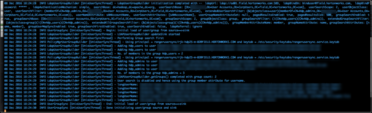 The result in Ranger UI are other user names (LongUserName) derived from ‘member’ group attributes full DN. You get the long name ‘James Kirk’ in the Ranger userlist in stead of j.kirk.