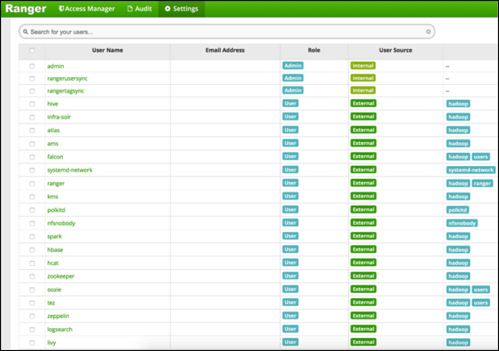 A vital part of the Ranger architecture is the ability to get users and groups from the corporate AD to use in policy definitions.