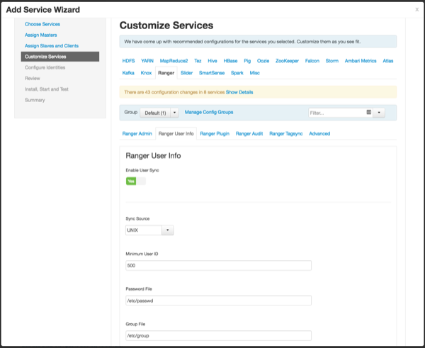 - On the Customize Services page, select the Ranger User Info tab.