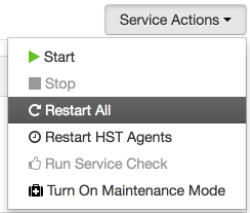 hst upgrade-ambari-serviceas root user.Restart all SmartSense components. You can do this by clicking on and selecting :